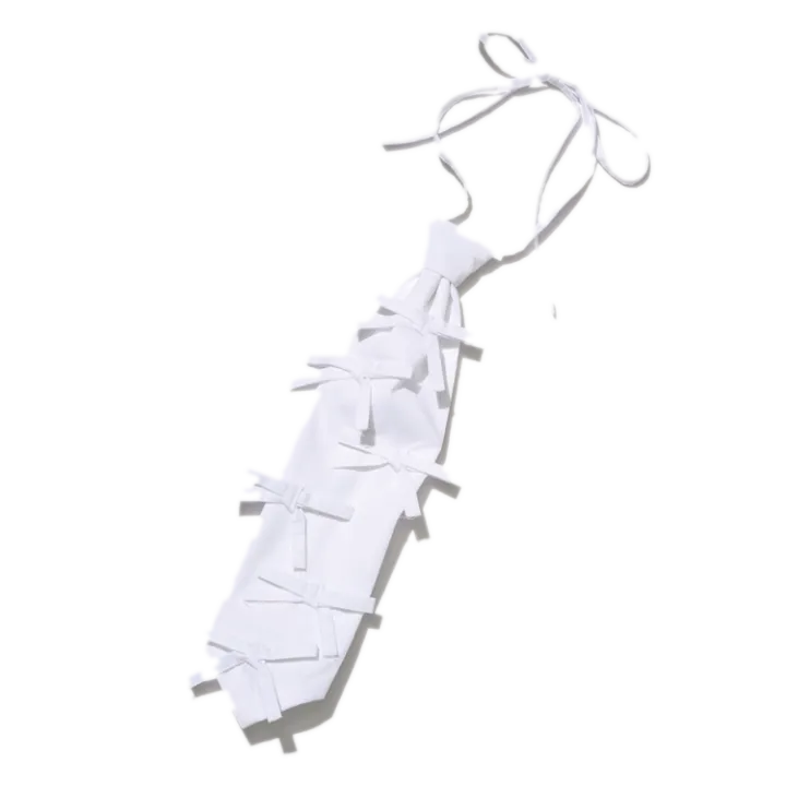 リボンをたっぷりあしらった白基調のネクタイ。バレエコアなデザインだからガーリーさんでも簡単♡