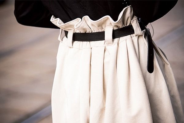 ゆったりしたボトムをウエスト高めでベルトを締める。しぼることによって「シルエットの余り」が引き立ち、腰から下のきゃしゃ見せがかなう。例えば古着屋にある、メンズのデニムやチノなどから試してみるのもおすすめ。