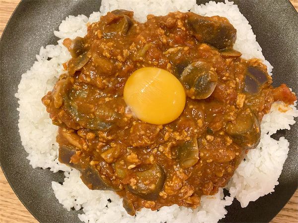 ベースのトマト缶と鶏ひき肉のおかげで、通常のカレーよりもサッパリとした仕上がりだと感じました。最後にのせた卵と一緒に食べると、まろやかなコクのある味わいになります。