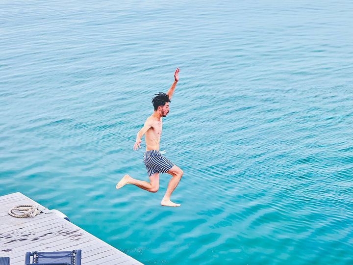 屋内サウナの水風呂ではご法度の飛び込みも、プライベートな海上サウナなら、誰にも気兼ねすることなくダイブできる。程良い冷たさの海に全身を沈め、クールダウンしていく爽快感は、この場所ならではの最高の贅沢だ