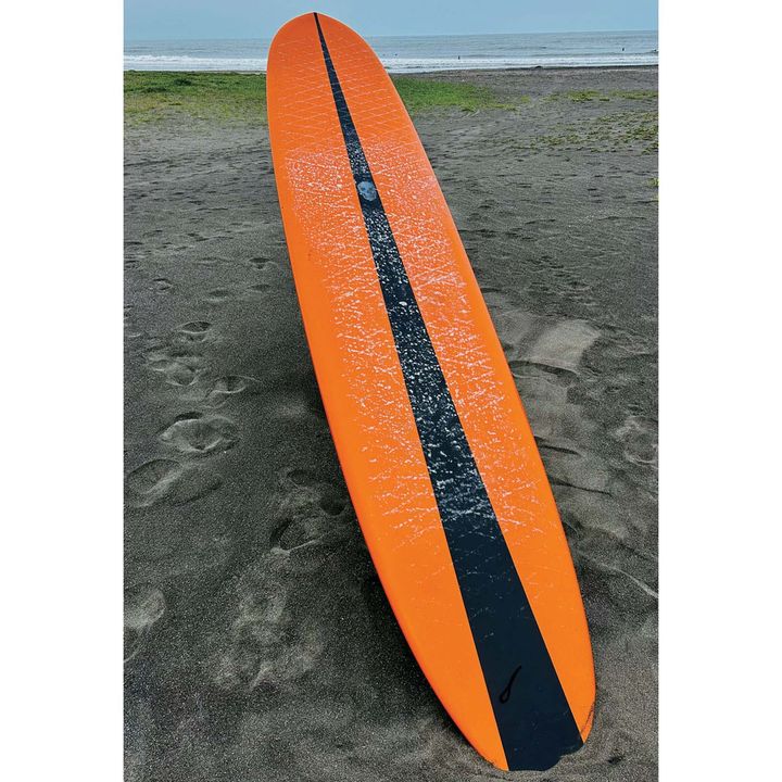 最初のボードを10年ほど使っていましたが、旅行でバリ島に行ったとき、すごく気に入ったものと出合って持ち帰りました。これが本当に優れモノで、パドリングがラクでテイクオフもしやすい。おかげでめちゃくちゃ上達して、このボードを手放せなくなりました。