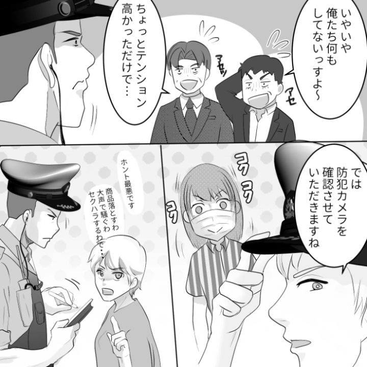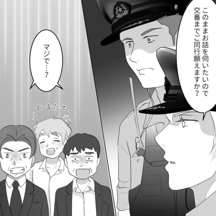 誰かが通報してくれたおかげで酔っ払いサラリーマン集団を警察に引き渡すことに成功。ようやく平和が訪れました。