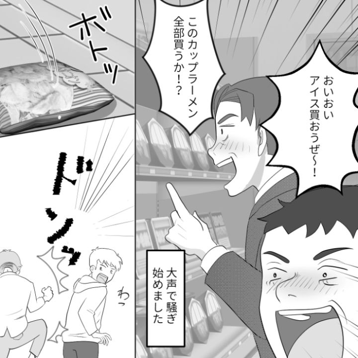 衝撃のエピソードを漫画化!今回は主人公のバイト先であるコンビニに深夜やってきた酔っ払いサラリーマン集団のお話をご紹介します。
