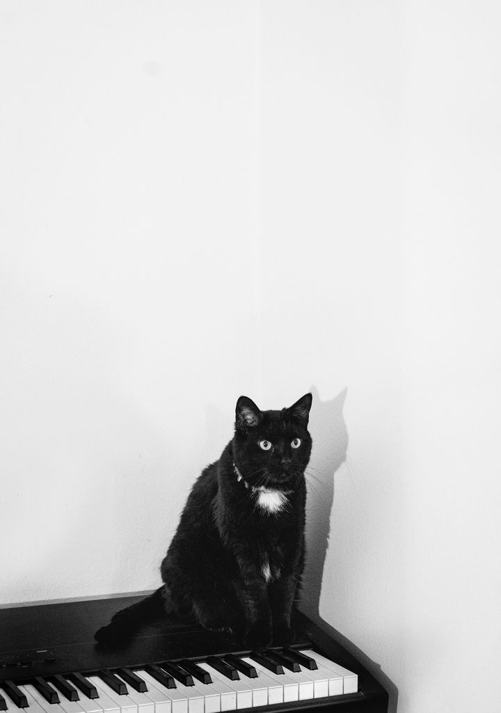 本日の美人猫は、ピアノの妖精さん。生真面目な顔で黒鍵のフリをしておりますが、如何せんサイズを間違えているようです。胸元の白は白鍵の名残でありましょうか。