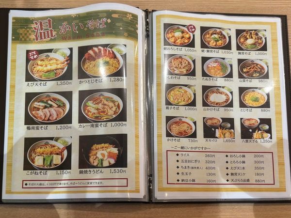 蕎麦は温かなものから冷たいものまで種類豊富にそろっています。