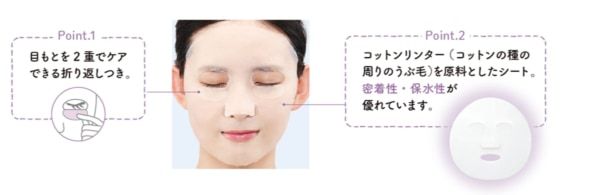 (3)目もともケアできる厚手のベンリーゼTM使用(※7) コットンの種のまわりのやわらかな綿毛から生まれ、保水性や密着性に優れたシートを採用しました。