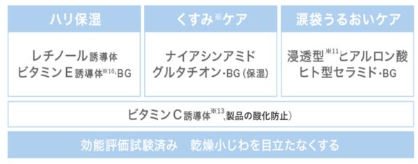 ※8 乾燥による ※9 うるおいお手入れのこと ※10キサンタンガム ※11 角層まで ※12(メタクリル酸グリセリルアミドエチル/メタクリル酸ステアリル)コポリマー ※13 リン酸アスコルビルMg