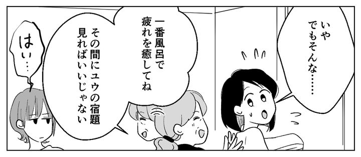 私が子どもたちをお風呂に入れようとしたところ、旦那と義母が義兄家族に先にお風呂に入るよう促しました。