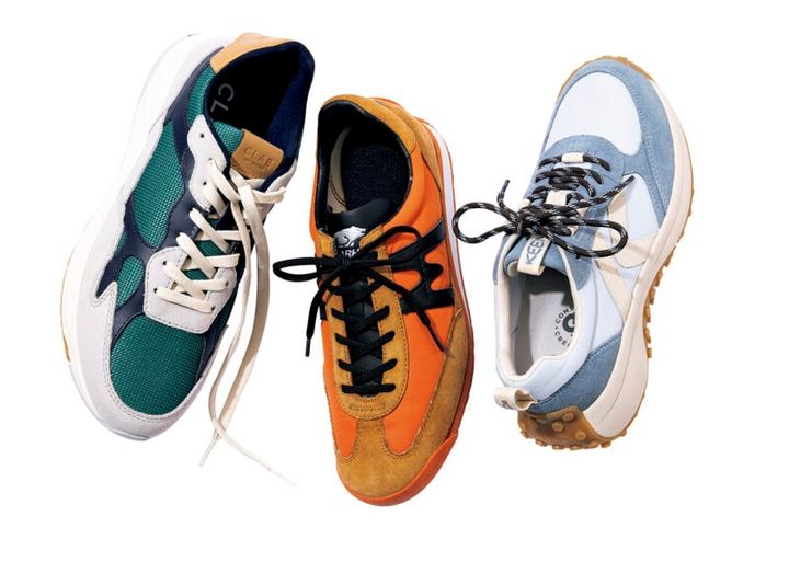 右から、ベージュ×くすみブルーがシック。1日はいても疲れにくい極上のはき心地。¥14,300(キーン/キーン・ジャパン) フィンランド発ならではの洒落た色使い。「メスタリ」は1977年に発売以来、根強い人気を誇るアイコン。¥15,400(カルフ/カルフトウキョウ) レトロモダンな配色とエコフレンドリーな素材や製法も魅力。¥33,000(クレイ/リーガルコーポレーション)