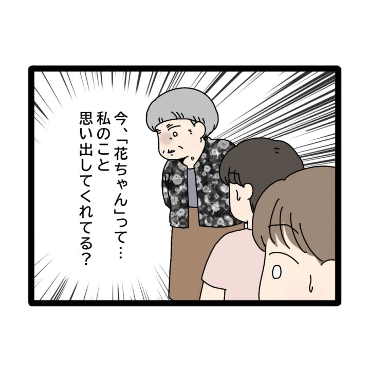 おばあちゃんと義母とのやりとりを見て、「今『花ちゃん』って・・。私のこと思い出してくれてる?」とびっくりしながらおばあちゃんを見つめました。
