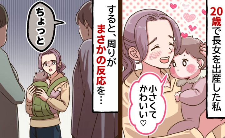 私は20歳の誕生日と同時くらいに、第1子を妊娠しました。初めてわが子を抱っこすると、その小ささとかわいさに愛おしい気持ちで胸がいっぱいに……。しかし、一歩外へ出ると、周囲のある反応に戸惑ってしまったのです。今回はそのときの体験談をお話しします。