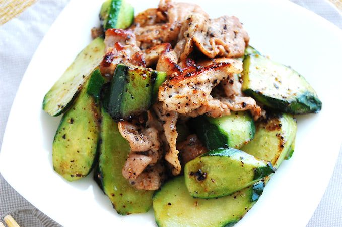 オイスターソースの甘味とコク、黒こしょうのスパイシーさが、炒めたきゅうりと相性バッチリ。