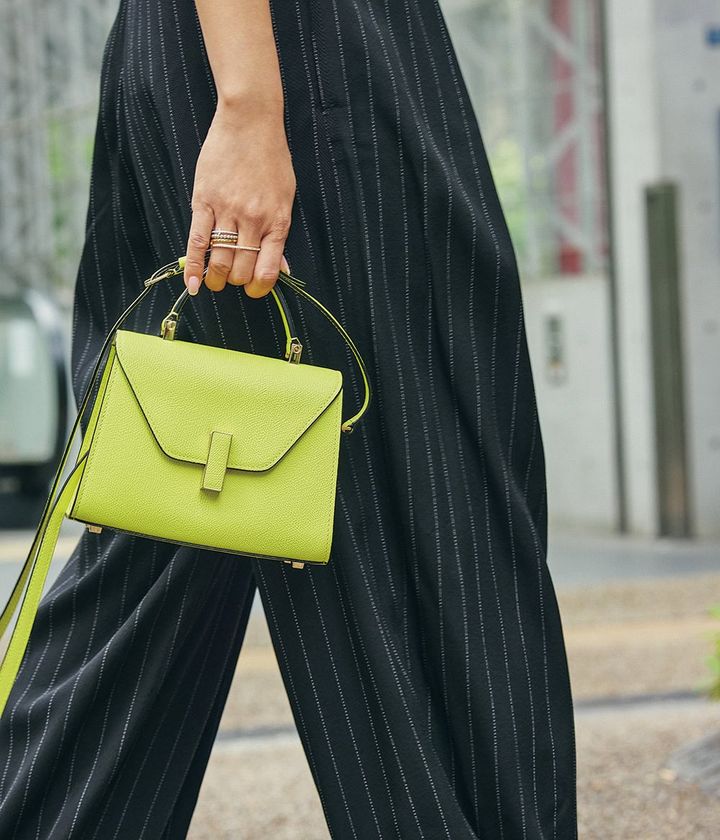 着席しても可愛さ際立つトップスとシャープなパンツは打ち合わせにぴったり。動きやすさと映えを叶えた万能コーデ。盛り袖やフリルといった糖度高めなデザインも黒なら気兼ねなく大人も難なくトライできる。黒コーデにヴィヴィッドなカラーバッグを合わせて多スクな自分へパワーチャージ!