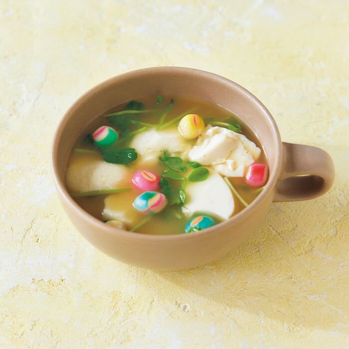 生でも食べられる豆苗や豆腐、お麩に熱湯を注げば即みそ汁の完成♪ みそと植物性たんぱく質で忙しい朝でも速攻腸活!