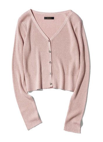 短め丈は細ピッチのリブが華奢見せをフォロー。シアー素材ならピンクも軽やかに映ります。