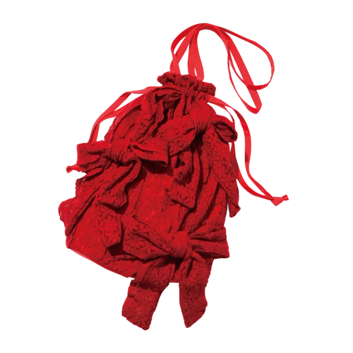 赤バッグ 4,950円/AS KNOW AS PINKY ベスト 8,990円/MANGO レーストップス 6,600円/merry jenny レーススカート 4,389円/SPINNS