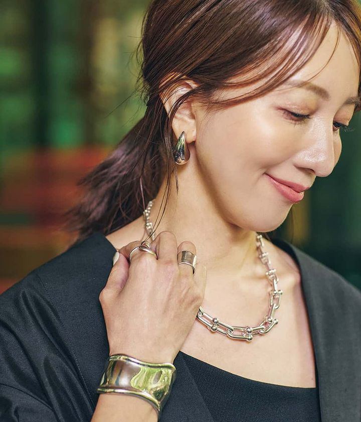 Earrings/Necklace:TIFFANY&CO.