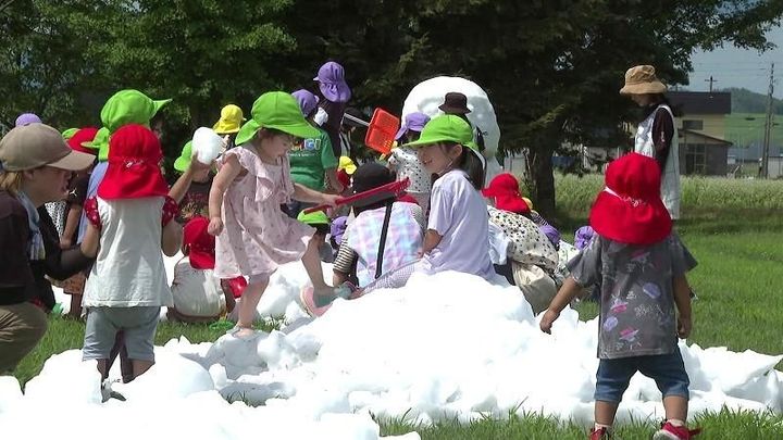 真夏に「雪遊び」!北海道だからこそ 5トンの銀世界に子どもたちが大喜び