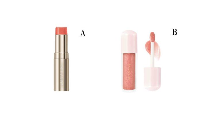 A.ルナソル ブラッシュスティックEX01¥4,950(限定)/カネボウ化粧品 B.トーン ペタル ブルーミング グロス EX07 ¥2,750