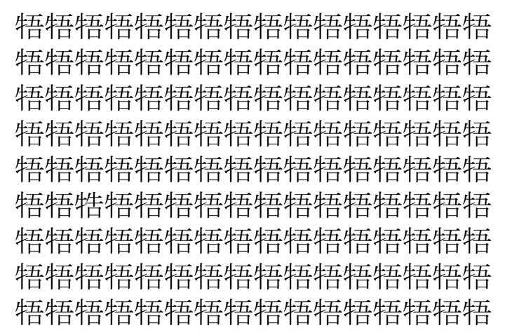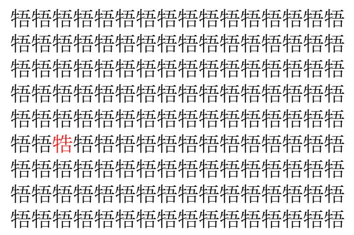 画像の中には、「牾」という漢字が縦に9行、横に16個並んでいます。 全部で144個となりますが・・・、そのうち1つは「異なる漢字」となってますよ!!