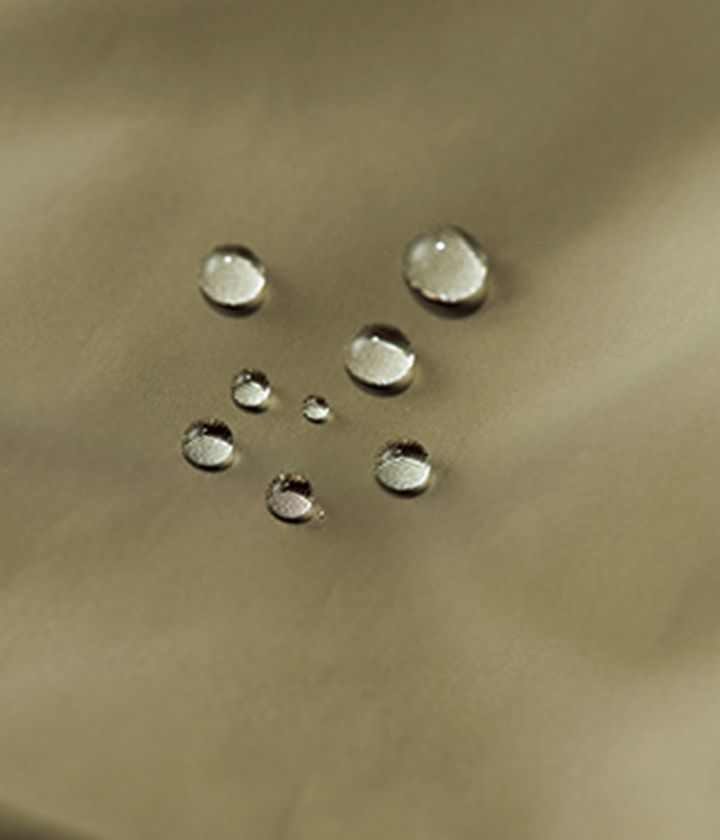 ハイテク素材のJKとワンピのキレイめコンビ。汚れ対策も華やかさも譲れない日の最適解。ジャケットはバックオープン仕様で、背中のファスナーを開ければ風通しアップ。さらに、ハンズフリーで持ち運べるバックパックストラップつきで食べ歩きや旅にも便利。水汚れだけでなく食べこぼしなどの油性汚れにも強い、撥油機能を備えたワンピは、シワになりにくく、おうち洗濯後のケアも楽ちん。