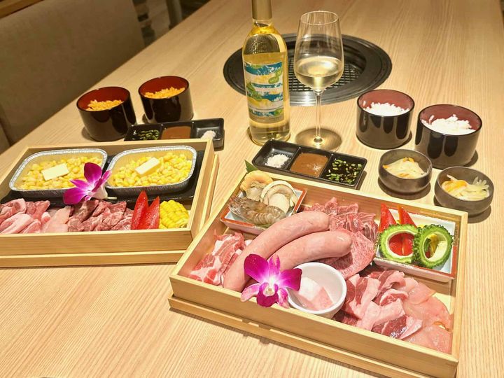 カペラでは夏季限定で(9月30日まで)屋外BBQも開催中!左:うちなーガーデンBBQメニュー「美らキッズ-CHURA KID'S」 ¥2,700、右:うちなーガーデンBBQメニュー「美ら空-CHURA SORA」 ¥7,500