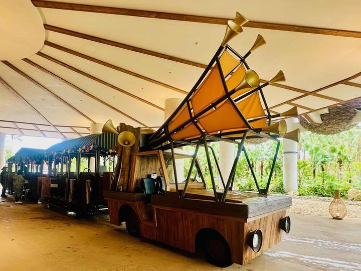 ジャングリア ナビゲーターのかけ声やリズムに合わせて楽器をたたきながら愉快にパーク内を移動できる「タムタムトラム」。まずはこれに乗りながら、どのアトラクションに行こうか考えるのもオススメ!