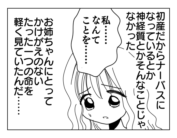 私(ミカコ)は、夫のコウヘイと、現在8歳のカナと5歳のリオの姉妹を育てています。私の5歳年上の姉は、昔から優しくてあまり怒らない人でした。そんな大切な姉が結婚をして、しかもとんとん拍子に妊娠まで! もう高齢だから子どもは難しいかな~なんて思っていたので、自分のことのように嬉しかったです。それなのに、いきなり姉から「今後は連絡を控えさせてください」とメッセージが……。母が姉に連絡すると、姉は私が出生前診断をすすめたことが原因みたいな言い方をしてきたのです。さらに母と姉の家におさがりを届けに行ったら、姉から絶縁宣言をされてしまいました。夫からも「ミカコが無神経だったと思う」と言われ、ようやく自分が発してしまった言葉の重大さに気がついたのです。