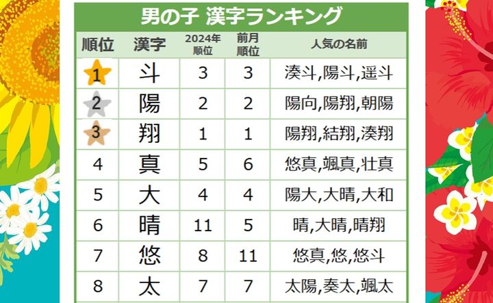 <2025年7月生まれ>男の子の漢字ランキング