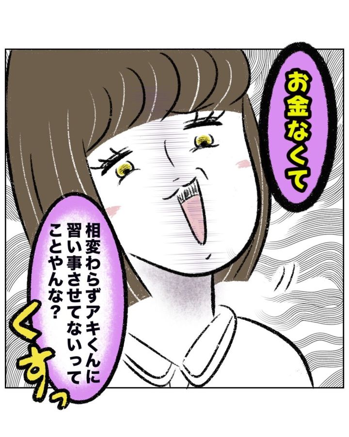 「お金なくて相変わらずアキくんに習い事させてないってことやんな?」と言ってくすっと笑いました。