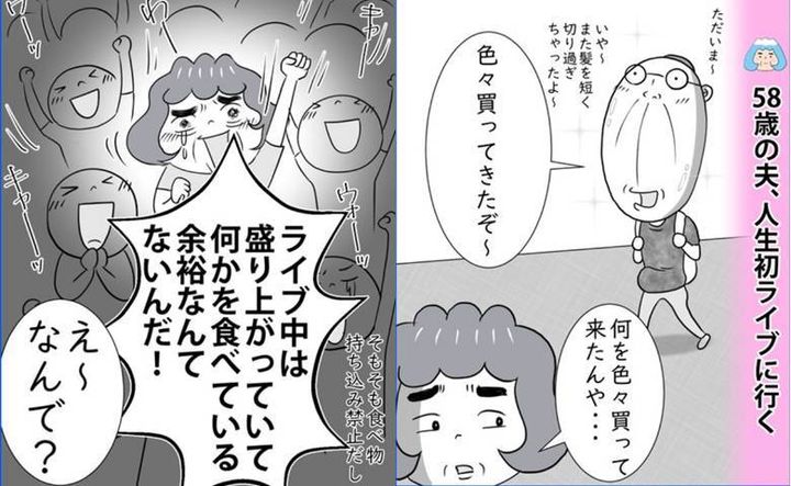 初ライブの58歳の夫「おなか空くね」。用意したものはお菓子とまさかの!<熟年夫婦ライフ>