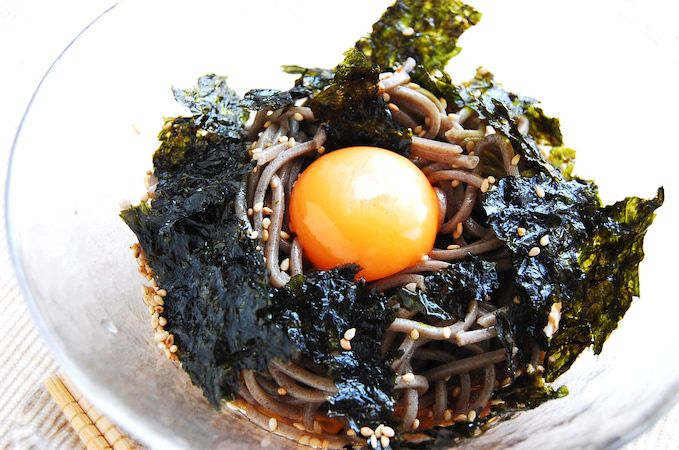 卵黄によって塩味がまろやかになり、そばとタレの絡みもよくなります。