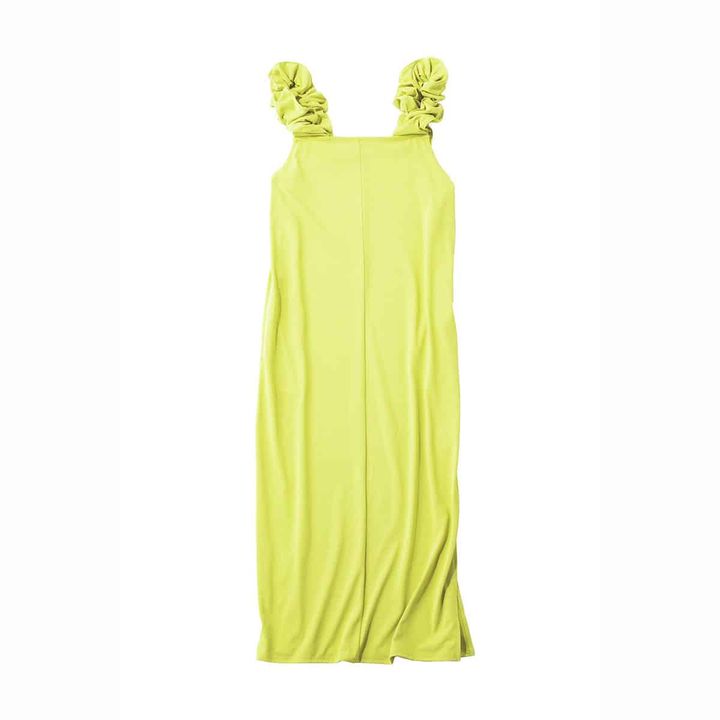 肩紐のシャーリングがアクセントに。肩周りを華奢に見せてくれそう。ワンピース[吸水速乾・接 触冷感・遮熱・UVカット]¥9,900(ファーストハンド/ファーストハンド)