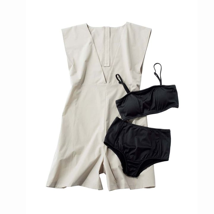 水着の上に着て袖部分を腰巻きにしてもオシャレ!オールインワン[撥水]¥44,000(THIRD MAGAZINE)