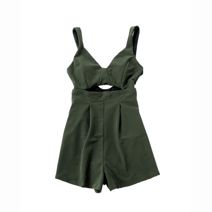 洒落たカーキで、大胆な背中開きもヘルシー見え