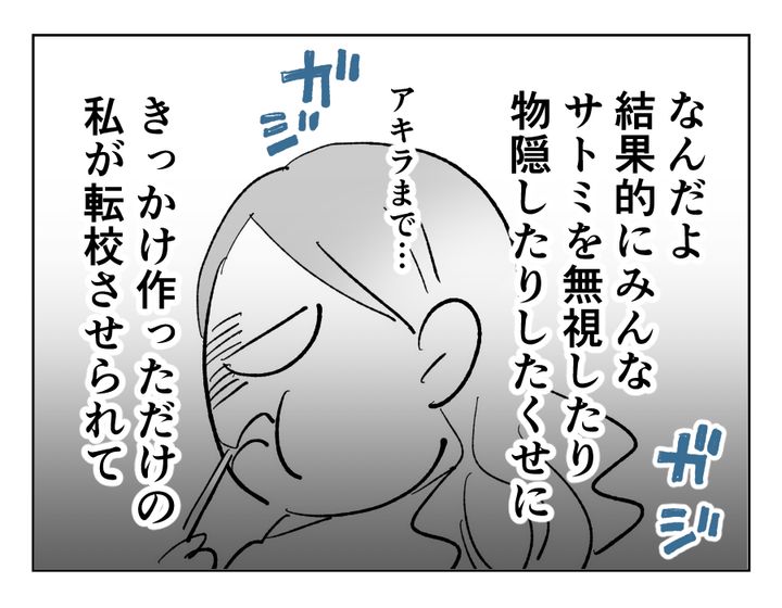 マキちゃんは結局、学校にいづらくなり転校したそう。ですが、転校先にも噂が広まってしまい……学校に行けなくなってしまいました。最初から反省していたら、いじめをしなかったら、やきもちを違うことに発散できていたら……こうはならなかったのかもしれません。自分の人生を自分で潰したマキちゃんに味方をする人は家族以外いませんでした。