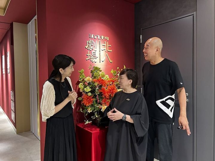劇場オープン時にも取材をさせていただきました。左から堰八アナ、「ジョブキタ北八劇場」アーティスティックコーディネーターの小島達子さん、芸術監督の納谷さん
