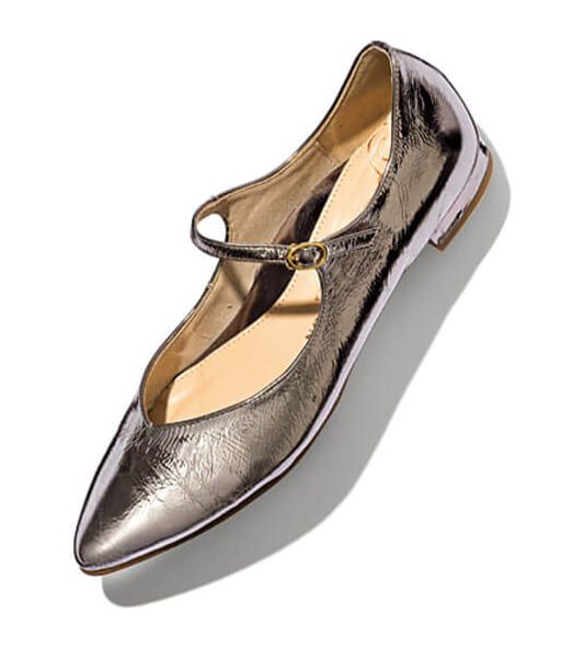 愛らしい印象になりがちなメリージェーンを、ほのかにグレーを感じる辛口なシルバーで大人っぽくアプデ。