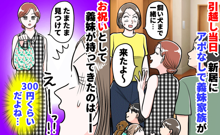 「飼い犬も一緒に…」引越し当日にアポなしで来た義妹一家。えっ、まさかの“300円お祝い”に絶句!