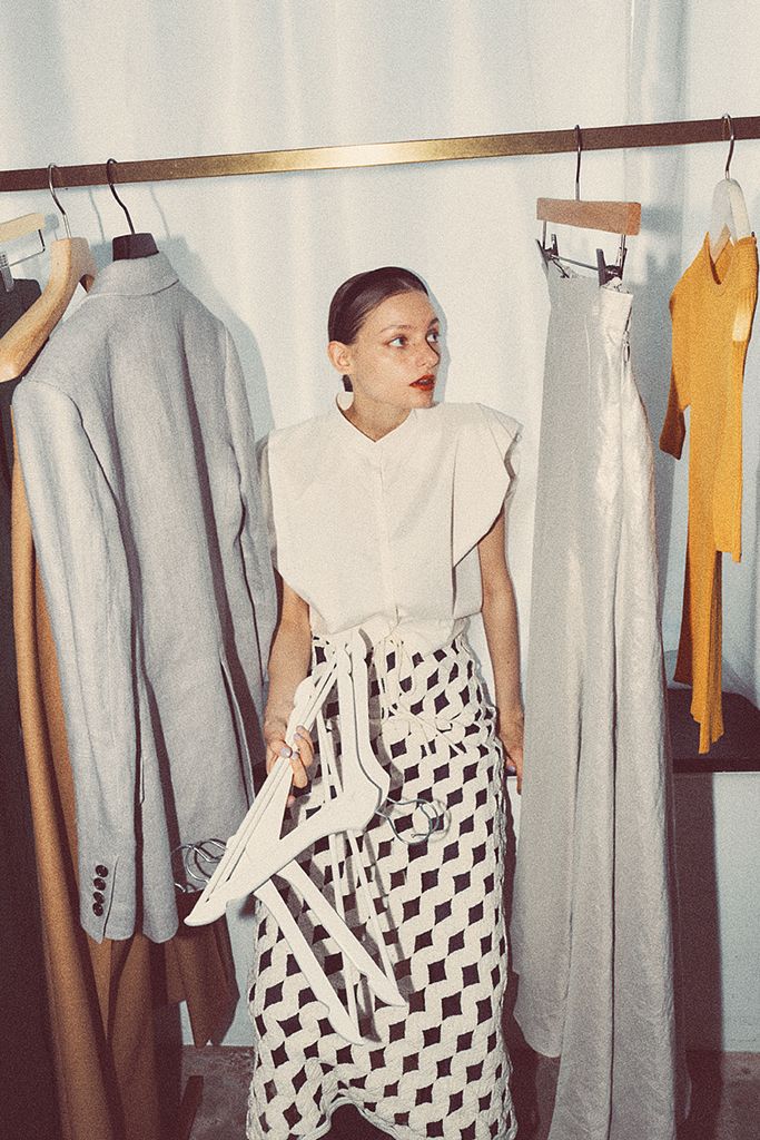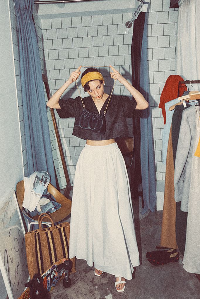 開襟やそで丈、リネンのドライな風合いも味方につけたエフォートレスなモノトーン