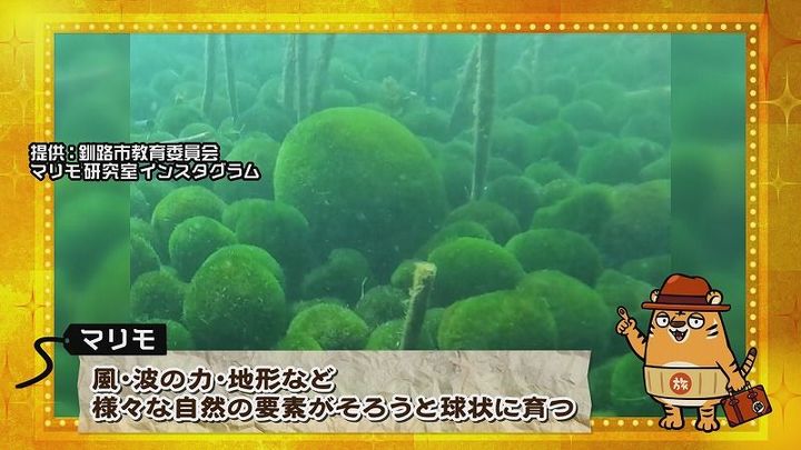 松尾アナ:「それが…阿寒湖のマリモ!」新くん:「緑色のもこもこしたやつですか?」