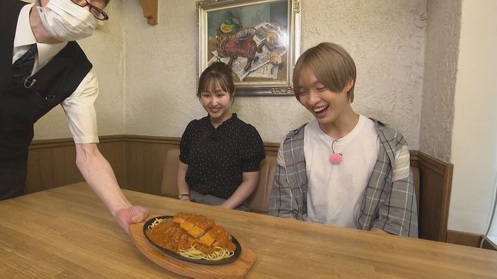新くん:「あっつ!美味しい!こんなあっちあちのミートソース食べたことないかもしれない。麺が鉄板にあたっている部分が程よくカリッとなっててミートソースの美味しさに、程よく香ばしさもプラスされてて、また食感もアクセントになっていてすごくおいしい」