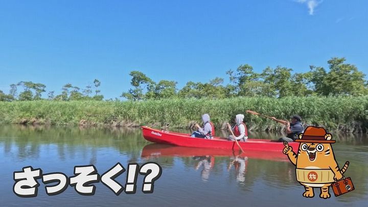 松尾アナ:「野生生物の貴重な生息地である釧路湿原。今から、カヌーに乗って巡っていただきます」新くん:「めっちゃ楽しみなんだけど!」