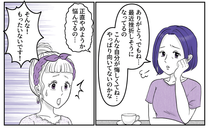 先生には励ましてもらったものの、虚しさや焦りが私を襲います。やっぱり「やりたいこと」なんてそう簡単に見つからないのです。私には向いていなかったのかも……。けれどそんなある日、同じ教室に通うエミカちゃんと話す機会がありました。