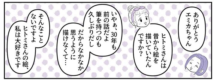 エミカちゃんは20代。結婚したばかりだそうで、その若々しさを私はうらやましいと思っていました。私が「自分が下手すぎて悔しい」「納得できる絵が描けない」と挫折しかけていることを話すと、エミカちゃんからは意外な言葉が……。