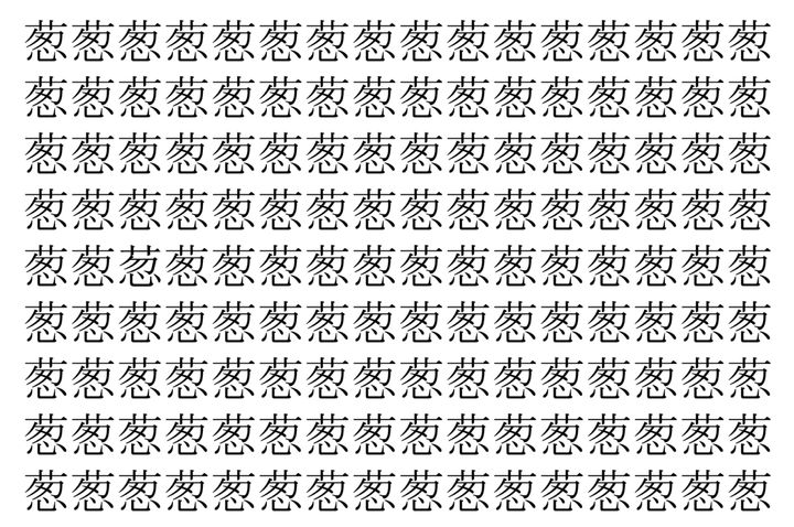 画像に並んだたくさんの「葱」という漢字。 その数144個なのですが・・・、実はその中に1つ違う漢字が紛れ込んでいます!!