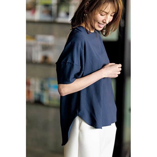 3. 【2選】「真面目すぎない」がちょうどいい!40代のネイビートップス【お出かけ〜学校まで】