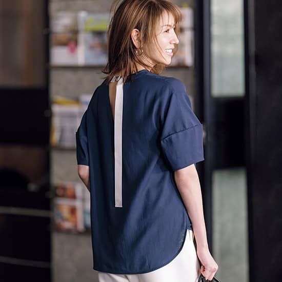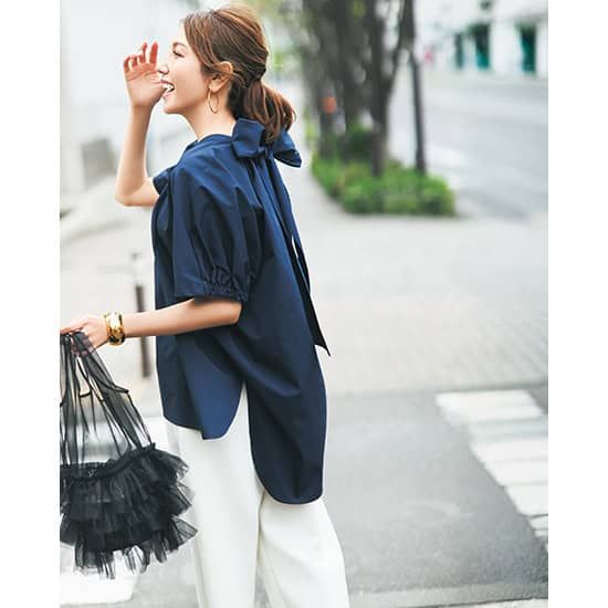 後ろ姿にディテールが効いたデザインのネイビートップスなら、かしこまりすぎないので学校行事からお出かけまでマルチなシーンで使えるからオススメ!“真面目すぎない”大人のアイテムを厳選しました。