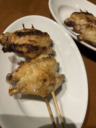 次にいただいたのが、「手羽先」(2本308円)。パリパリと炭で焼かれており、じゅわっと鶏の旨味が口に広がります。