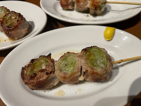 まずは「とりもも 塩」(220円)と「豚しそ巻き」(264円)、「とりもも たれ」(220円)をいただきました。